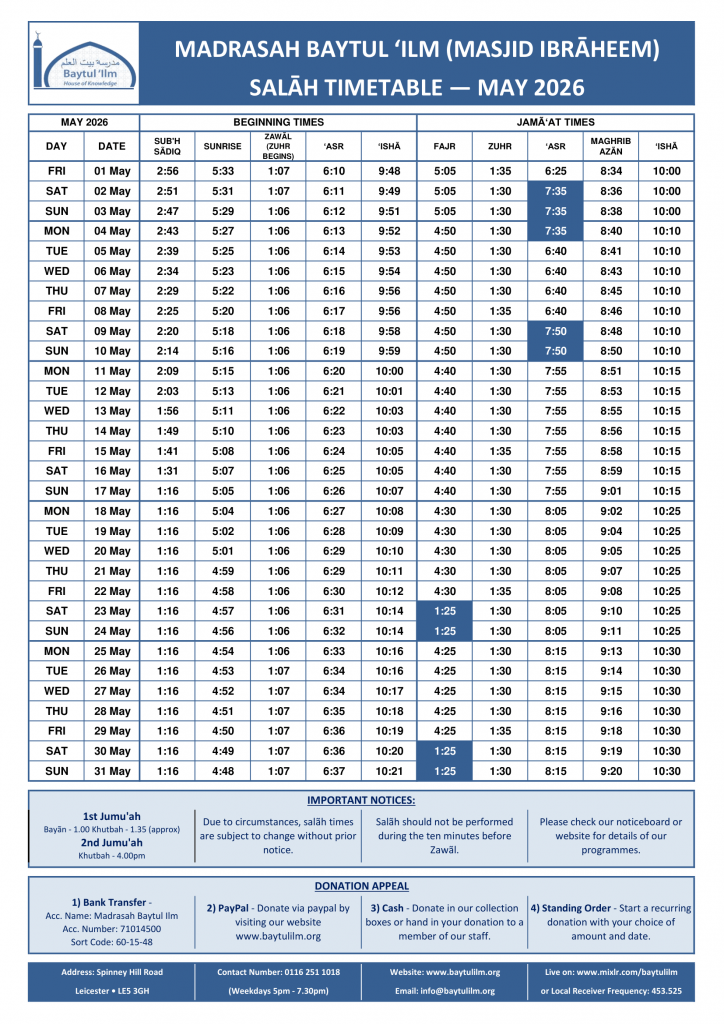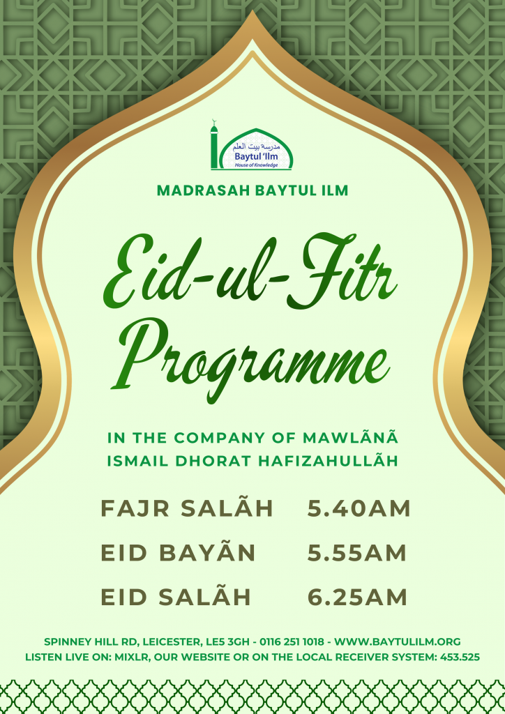 This website has been designed as a means to gain access to information about Madrasah Baytul ‘Ilm. The site also aims to provide deeni education through comprehensive information on various topics of deen. This will enable the young and old to benefit and enhance their knowledge and practical day to day life.