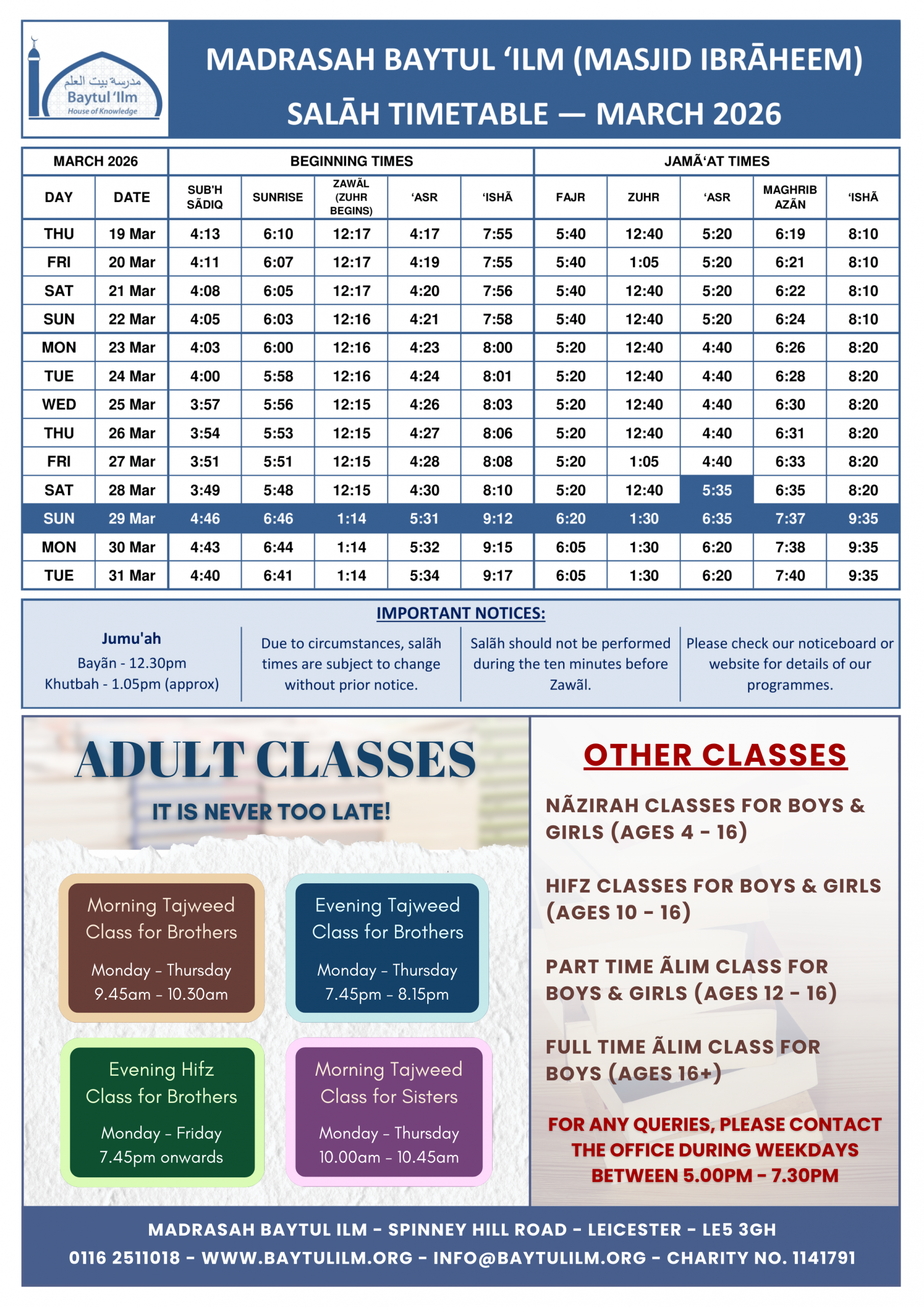 | Zuhr | 12:18 pm | 12:40 pm |